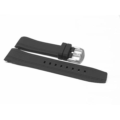 Pulseira Para Relógio Borracha 24Mm Preta Curva Dois Frisos