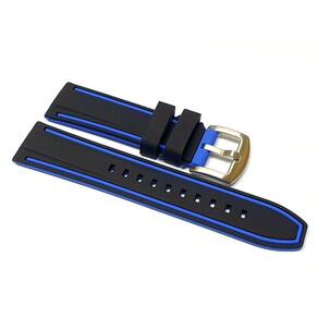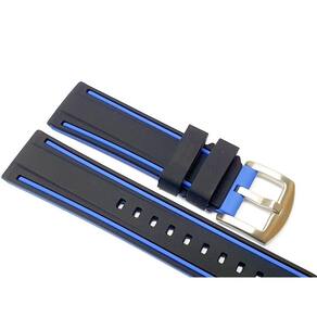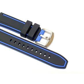 Pulseira para Relógio de Pulso Borracha 22mm Preta com Azul Modelo: Reta Material: Borracha/Silicone Cor: Preto com Detalhe Azul Medidas: Comprimento: 21cm Largura: 2.20cm Largura Batente: 2.2 cm
