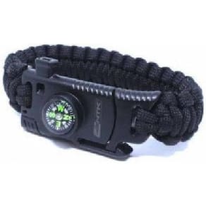 SOBRE O PRODUTO: Pulseira Paracord com lâmina, iniciador de fogo e bússola Possui micro barra de magnésio para iniciar fogo através do atrito das partes. A seu corda de é alta resistência e pode ser desacoplado pra uso separado em emergências, além de possuir um apito na base de fechamento.