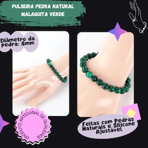 Pulseira Pedra Natural Malaquita 8mm Silicone -Escolha a Cor
