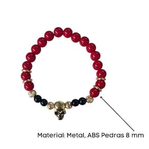 Pulseira Pedra Natural Pomba Gira Crânio Jade Vermelha 8 mm