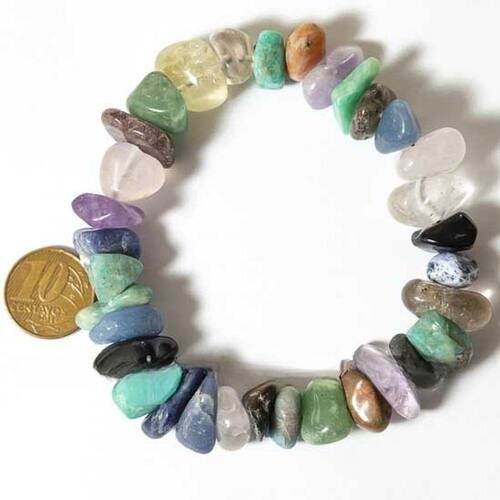 Pulseira Pedra Mistas Rolada Pedra Natural com Fibra de Silicone, Pedras com lapidação Rolada e Furo transversal, passando fibra de silicone para montar a pulseira. Fibra é mais resistente que o silicone o que possibilta varias medidas de usuarios, além de facil reparo ou ajuste basta trocar a fibra silicone e diminuir alguma pedra para uso infantil.
