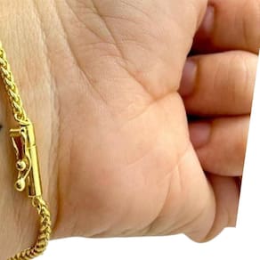Pulseira 3mm Banhado a Ouro 18K Estilo Fino Detalhes do Produto: Material: ligas metálicas de alta qualidade, especialmente tratadas para fixação e absorção do ouro, com acabamento em verniz protetor. Aparência: visual idêntico ao ouro maciço. Produção: artesanal, com atenção meticulosa aos detalhes. Banho: 10 camadas espessas de ouro 18k, finalizadas com verniz antialérgico . Elos: soldados varia conforme o modelo . Pedras: zircônias brilhantes cravejadas quando aplicável . Tamanhos Disponíveis: Cordões Masculinos: 70cm padrão e 60cm sob consulta/Pedido Via Chat . Cordões Femininos: 50cm padrão e 45cm sob consulta/Pedido Via Chat . Pulseiras: 21cm padrão ; tamanhos de 18cm a 23cm sob consulta/Pedido Via Chat. Pingentes: conforme imagens; consulte para mais detalhes via chat. Espessuras Recomendadas para Cordões / Pingentes: P: 1mm a 4mm M: 4mm a 8mm G: 6mm a 13mm Gg: 12mm a 18mm Incluso na Compra: Saquinho de organza para armazenamento seguro. Caixa elegante, perfeita para presente. Cupom de desconto para a próxima compra. Flyer com outros produtos da coleção. Carta de agradecimento personalizada. Adesivo da marca ToJoia18k. Informações Adicionais: : 6 meses termos acompanham o produto . Devolução: 7 dias para devolução sem questionamentos. Envio: despacho em até 24 horas úteis após confirmação do pagamento. Cuidados com a Peça: Evite contato com produtos químicos; aguarde o perfume secar antes de usar. Evite contato com shampoo, condicionadores e suor excessivo. Armazene em local seco, preferencialmente no saquinho de organza fornecido. Uso no mar e piscina é permitido; lave com água corrente e sabão neutro após. Por que Escolher a ToJoia18k Semi-joias luxuosas que combinam estilo, qualidade e sofisticação. Banho espesso de ouro 18k, garantindo brilho duradouro e acabamento impecável. Design exclusivo e produção artesanal, perfeitos para qualquer ocasião. Materiais premium que asseguram durabilidade. Ao escolher uma semi-joia ToJoia18k, você investe em qualidade, elegância e uma experiência única. Aguardamos sua compra Observação: pode ocorrer variação no fecho raramente . Imagens reais, sem edição. Qualquer dúvida, estamos à disposição para esclarecimentos. Marca: Não Informado