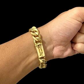 Pulseira Pit Bull 13mm Banhado a Ouro 18K Detalhes do Produto: Material: ligas metálicas de alta qualidade, especialmente tratadas para fixação e absorção do ouro, com acabamento em verniz protetor. Aparência: visual idêntico ao ouro maciço. Produção: artesanal, com atenção meticulosa aos detalhes. Banho: 10 camadas espessas de ouro 18k, finalizadas com verniz antialérgico . Elos: soldados varia conforme o modelo . Pedras: zircônias brilhantes cravejadas quando aplicável . Tamanhos Disponíveis: Cordões Masculinos: 70cm padrão e 60cm sob consulta/Pedido Via Chat . Cordões Femininos: 50cm padrão e 45cm sob consulta/Pedido Via Chat . Pulseiras: 21cm padrão ; tamanhos de 18cm a 23cm sob consulta/Pedido Via Chat. Pingentes: conforme imagens; consulte para mais detalhes via chat. Espessuras Recomendadas para Cordões / Pingentes: P: 1mm a 4mm M: 4mm a 8mm G: 6mm a 13mm Gg: 12mm a 18mm Incluso na Compra: Saquinho de organza para armazenamento seguro. Caixa elegante, perfeita para presente. Cupom de desconto para a próxima compra. Flyer com outros produtos da coleção. Carta de agradecimento personalizada. Adesivo da marca ToJoia18k. Informações Adicionais: : 6 meses termos acompanham o produto . Devolução: 7 dias para devolução sem questionamentos. Envio: despacho em até 24 horas úteis após confirmação do pagamento. Cuidados com a Peça: Evite contato com produtos químicos; aguarde o perfume secar antes de usar. Evite contato com shampoo, condicionadores e suor excessivo. Armazene em local seco, preferencialmente no saquinho de organza fornecido. Uso no mar e piscina é permitido; lave com água corrente e sabão neutro após. Por que Escolher a ToJoia18k Semi-joias luxuosas que combinam estilo, qualidade e sofisticação. Banho espesso de ouro 18k, garantindo brilho duradouro e acabamento impecável. Design exclusivo e produção artesanal, perfeitos para qualquer ocasião. Materiais premium que asseguram durabilidade. Ao escolher uma semi-joia ToJoia18k, você investe em qualidade, elegância e uma experiência única. Aguardamos sua compra Observação: pode ocorrer variação no fecho raramente . Imagens reais, sem edição. Qualquer dúvida, estamos à disposição para esclarecimentos. Marca: Não Informado