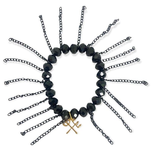 Pulseira Pomba Gira X Exu Preta Corrente Cristal e Silicone