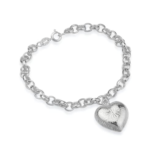 Pulseira Prateada Elo Português Com Coração