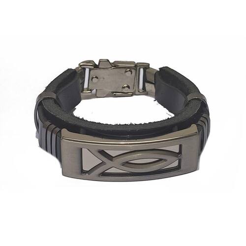 Graça e Paz Somos da MARANATA SHOFAR vendemos Shofar, Talits, Candelabros Menorah, kipá, chaveiros, castiçais, torah, além de diversos itens importados de Israel e produtos nacionais. DESCRIÇÃO DO PRODUTO -01 pulseira em material sintético com partes em metal prata. Contém 22 cm em linha reta. Desfrute de uma pulseira de baixo custo espiritualmente inspiradora . Esta pulseira de couro preto apresenta uma peça central em aço inoxidável de dois tons com um peixe e um desenho de Menorá e Estrela de David. Prendedor confortável. - Pulseira de borracha bonita de baixo custo - Placa de cor dourada no centro - Fecho de metal fácil de fechar Marca: Holy Land Ean: 7905615245798