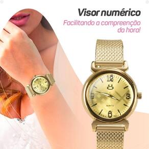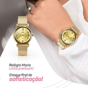 - Relógio Digital Feminino Orizom Maria: Com maquinário dourado banhado a ouro e pulseira em silicone ajustável, este relógio é uma peça de precisão e um acessório elegante para o visual diário.