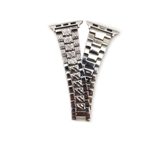 Pulseira relogio smartwatch aço 3 elos pedra strass brilho relogio inteligente luxo Cor: prata Pulseira relogio smartwatch aço 3 elos pedra strass brilho relogio inteligente luxo Pulseira feita de malha de aço inoxidável, não enferruja, ajustável, para smartwatchs de 42mm/44mm.