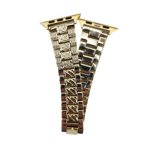 Pulseira relogio smartwatch aço 3 elos pedra strass brilho relogio inteligente luxo Cor: dourado Pulseira relogio smartwatch aço 3 elos pedra strass brilho relogio inteligente luxo Pulseira feita de malha de aço inoxidável, não enferruja, ajustável, para smartwatchs de 42mm/44mm.