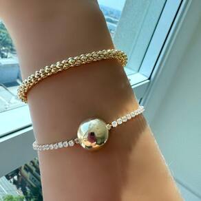 A Pulseira Riviera Cristal com Bola Lisa é uma joia que combina brilho e elegância de forma magnífica. Essa pulseira é perfeita para quem busca um acessório sofisticado para ocasiões especiais ou para adicionar um toque de glamour ao seu dia a dia.