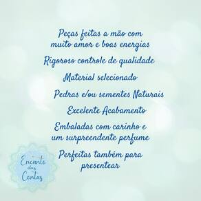 Sempre em sintonia com as melhores vibrações, as criações da Encanto das Contas são produzidas dentro de cuidadosas normas de qualidade. Desde a busca das melhores pedras até a pubicação de nossas coleções, todo o processo de confecção dos Japamalas é feito pensando em encantar e atingir a satisfação plena de quem as recebe, fazendo parte dos momentos de meditação, conexão, elevação e autocuidado.