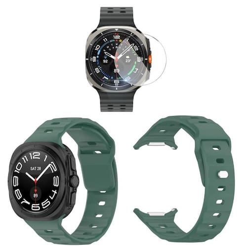 Pulseira silicone + pelicula vidro para galaxy watch ultra Cor da pulseira: verde escuro Qualidade e compra garantida Atendimento qualificado Enviamos seu pedido em até 1 dia útil após confirmação do pagamento
