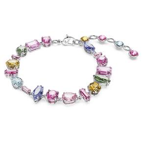 SWAROVSKI Coleção de pulseiras de cristal Gema, Cristal, Cristal - Medidas: Comprimento (mínimo - máximo): 16,5 - 20,5 cm, Largura: 1 cm - Design exclusivo: uma variedade de cristais meticulosamente cortados em cores pastel ricas e vibrantes dão a esta pulseira seu próprio estilo glamoroso, para um visual verdadeiramente cativante que certamente fará uma declaração única - Elegante e atraente: Feito em um acabamento de ródio, este design chique apresenta cristais vívidos em cortes e tamanhos extraordinários que se complementam perfeitamente para um brilho que melhora o humor - Beleza versátil: use esta pulseira divertida sozinha para um toque de alegria prismática ou combine-a com outras peças da coleção Gema para opções de estilo ainda mais luxuosas - Projetado para durar: as joias Swarovski mantêm seu brilho quando práticas de cuidados simples são observadas; remova antes de entrar em contato com água, loções ou perfumes e polir com um pano sem fiapos - Itens entregues: (1) Pulseira Swarovski Gema com pedras multicoloridas de corte misto em acabamento de ródio, completa com caixa de pulseira Swarovski - Compre a Gema Family, que possui colares, brincos e pulseiras que combinam