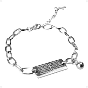 Pulseira Unissex Aço Inoxidável Pingente Pai Nosso - Qualidade Premium - Orizom pulseira Unissex em Aço Inoxidável Prata com Pingente Retangular Gravado a Laser com a Oração do Pai Nosso Completa 25 cm com Extensão