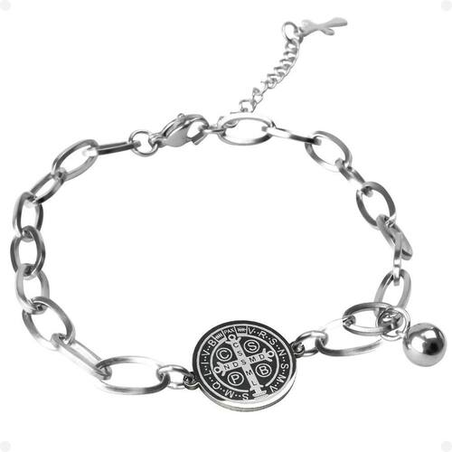 - Material Premium: Confeccionada em aço inoxidável de alta qualidade, resistente à oxidação e durável. - Tamanho Ajustável: Comprimento de 25 cm, ideal para qualquer tamanho de pulso. - Design e Significado: Sofisticada, moderna e com propósito espiritual. - Pingente Medalha de São Bento: Gravação a laser precisa e duradoura, simbolismo de proteção e bênção. - Conservação: Evitar contato com produtos químicos agressivos para preservar o brilho.