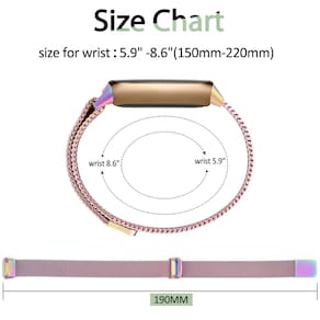 - ?Design exclusivo com fecho magnético?Tamanho para pulsos de 150 mm a 220 mm. O fecho é feito de um laço de metal magnético elegante e elegante. Sem necessidade de fivela, fácil de colar e travar suas pulseiras. O tamanho da pulseira pode ser ajustado livremente de acordo com as circunstâncias de cada pulso. A fivela magnética forte mantém a pulseira segura.