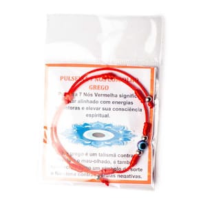 Pulseira Vermelha 7 Nós com Olho Grego - Amuleto de Proteção e Energia PositivaAjustável – Proteja sua Energia com Força e Espiritualidade A Pulseira Vermelha 7 Nós com Olho Grego é um poderoso amuleto de proteção, criado para afastar energias negativas e atrair boas vibrações. Com uma combinação de simbolismo ancestral e um design discreto, esta pulseira é perfeita para quem busca sorte, equilíbrio espiritual e segurança energética no dia a dia. Principais Benefícios:\nProteção Espiritual: Os sete nós representam a proteção em todas as fases da vida, criando um escudo energético contra influências indesejadas, como o mau-olhado e inveja.\nSorte e Positividade: Tradicionalmente usada para atrair boa sorte e harmonia, sendo um amuleto altamente simbólico em diversas culturas e práticas esotéricas.\nForça e Coragem: O cordão vermelho ativa a energia vital, fortalecendo a autoconfiança e o foco para superação de desafios.\nAjuste Personalizado: Com fecho deslizante, a pulseira se adapta perfeitamente ao seu pulso, oferecendo conforto e segurança no uso diário.\nDetalhes do Produto:\nTipo: Pulseira de proteção com 7 nós e Olho Grego\nMaterial: Cordão vermelho de alta resistência e bolinha metálica (0,4 cm de espessura)\nTamanho: Ajustável – de 16 cm a 24 cm (aproximadamente)\nPeso: Leve, confortável para o uso contínuo\nMontagem: Feita artesanalmente com fecho ajustável manual\nOrigem: Produção artesanal nacional\n Observações Importantes:Por ser um produto artesanal, variações no acabamento e nos nós podem ocorrer, tornando cada peça única. Para garantir maior durabilidade, evite o contato direto com a água. Marca: Não Informado