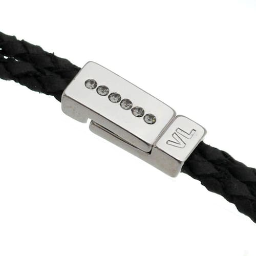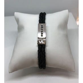 Pulseira de Couro Trançado VL Accessoires, com detalhe em Cristais, Revestida em Ródio. Aprimora qualquer Visual com seu Design Clássico e Elegante uma lembrança Atemporal que defende uma estética Unissex Ultramoderna.