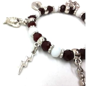 Linda pulseira com pedras coloridas e acessórios Prateados.