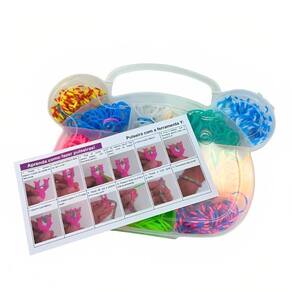 Conteúdo da Embalagem: Aproximadamente 350 elásticos em borracha 20g , fechos de plástico, 01 ferramenta Y e 01 ferramenta gancho.