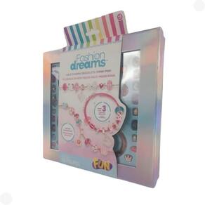 Conteúdo da Embalagem: 01 pulseira metalica, 02 pulseiras de cordão, 15 contas decorativas, 03 berloques, 06 berloques de contas e 1 folha de instrução.