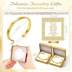 Características: Esta pulseira Ayatul Kursi vem com uma caixa elegante, medindo aproximadamente 7,5 x 7,5 x 1,8 cm, o que aumenta a experiência de presente. Valorizada por seu charme estético e uso prático, a caixa aumenta o charme geral do presente. A abertura adaptável da pulseira islâmica dourada garante um ajuste adequado para a maioria dos tamanhos de pulso. Basta dobrar para ajustar, garantindo muito conforto para o usuário. Sinta a graça divina misturada com artesanato requintado nesta pulseira única. Especificações: Material: aço inoxidável Cor: dourado Tamanho: Pulseira: cerca de 2,5 polegadas/6,5 cm de diâmetro, 0,24 polegadas/0,6 cm de altura, 6,2 polegadas/15,8 cm de comprimento Caixa: cerca de 2,95 x 2,95 x 0,71 polegadas/7,5 x 7,5 x 1,8 cm A embalagem inclui: 12 pulseiras Ayatul Kursi. 12 caixas Observações: Medição manual, considere pequenos erros no tamanho. A cor pode existir uma pequena diferença devido a diferentes telas. - Presente islâmico em massa: cada pacote vem com 12 pulseiras islâmicas para mulheres, juntamente com um número igual de caixas de presente, agora mantenha sua linda pulseira muçulmana segura ou apresente uma oferta atenciosa para seus entes queridos com este conjunto abrangente - Joias islâmicas confiáveis para mulheres: feita de aço inoxidável, esta pulseira Ayatul Kursi para mulheres e homens promete longevidade e durabilidade, à prova de ferrugem e amiga da pele, a cor dourada brilhante adiciona um toque elegante e o texto é fácil de ler, tornando-o um bom acessório para a maioria das ocasiões - Presentes Eid significativos para mulheres e homens: cada pulseira Eid Ayatul Kursi é gravada com escrituras claras, tornando-a um acessório significativo que pode ser utilizado todos os dias. As pulseiras Eid Mubarak foram projetadas tendo em mente os sentimentos religiosos do usuário - Tamanho ideal: com as dimensões cuidadosas de 6,3 cm de diâmetro, 0,6 cm de altura e 15,7 cm de comprimento, este presente muçulmano do Ramadã para mulheres com tamanho ajustável e aberto garante um ajuste satisfatório e confortável para a maioria dos pulsos - Presente versátil: com caixas de joias elegantes, esta pulseira muçulmana para mulheres e homens pode ser usada como presentes Eid Al-Fitr, presentes Eid Al Adha, presentes Eid Mubarak, presentes do Ramadã, presentes islâmicos, presentes muçulmanos para seus amigos, esposa, filha, filho, irmão, mãe, pai, irmãs
