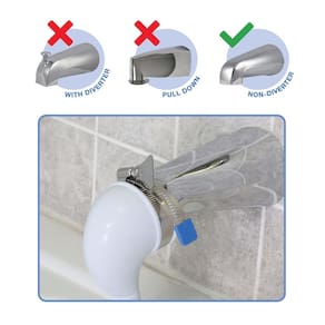 - Serve apenas para bicos de banheira sem diversor: o pulverizador de chuveiro portátil VersaSpray serve apenas para bico de banheira de jardim redondo ou quadrado de tamanho padrão e bico de banheira sem desviador; NÃO SERVE PARA ENVIADORES DE BATHTUB COM UM DIVERSOR DE PULL-UP