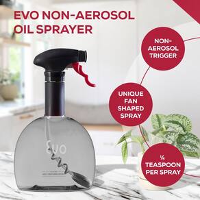 - O frasco pulverizador de óleo não aerossol autêntico da Evo pulveriza sem propelentes ou produtos químicos prejudiciais, não requer bombeamento ou escorvamento e não fica entupido