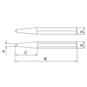 O punção de centro da Tramontina PRO é muito utilizado para fazer marcações em metais, como por exemplo, marcar a posição dos furos para guiar as brocas. Possui durezas diferenciadas nas faces de golpe para garantir segurança e resistência em seu uso. Quem é PRO usa. Orientações Produzido em aço cromo molibdênio temperado. Têmpera por indução na ponta.Acabamento fosfatizado.DIN 7250.Estas ferramentas de impacto têm dureza diferenciada no gume de corte e na face que será golpeada.As ferramentas são submetidas a testes de aplicação para garantir que o processo de fabricação esteja dentro das especificações.A camada de fosfato mais a deposição de óleo aplicado na superfície das peças, garantem uma proteção excelente contra a corrosão.A variedade de tamanhos e formas de punções e talhadeiras, sempre assegura a ferramenta certa para cada aplicação.Ferramenta mecânica utilizada para fazer marcações em metais, como por exemplo, marcar furos para guiar as brocas.As ferramentas são produzidas e testadas conforme normas específicas. Observações Use óculos, luvas e outros equipamentos de proteção individual (EPIs) de acordo com a tarefa a ser executada. Utilize punções, saca-pinos e talhadeiras em superfícies ou componentes de dureza inferior a suas arestas de corte ou pontas. Descarte qualquer punção, saca-pino e talhadeira que apresente rachaduras, sinais de uso excessivo ou que tenham a face de impacto deformada. Golpeie as punções, saca-pinos e talhadeiras perpendicularmente às faces de impacto. Não use punções de centro para sacar pinos. Respeite as medidas e ângulos originais ao refazer a ponta dos punções ou gume de corte das talhadeiras. Armazene em local limpo e seco. Características Gerais EAN13 7891114031393 DUN14 17891114031390 NCM 8205.59.00 Peso Líquido 0,0700 kg. Peso Bruto 0,0700 kg. Metragem 0,000208 m³. Dimensões Embalagem (Compr. X Larg. X Alt.) 130x 80x 20 mm. Dimensões Produto (Compr. X Larg. X Alt.) 120x 10x 9 mm. Dimensão Extra A 4,0 mm. Dimensão Extra B 120,0 mm. Dimensão Extra C 40,0 mm. Dimensão Extra D 10,5 mm. Dimensão Extra E 9,5 mm.