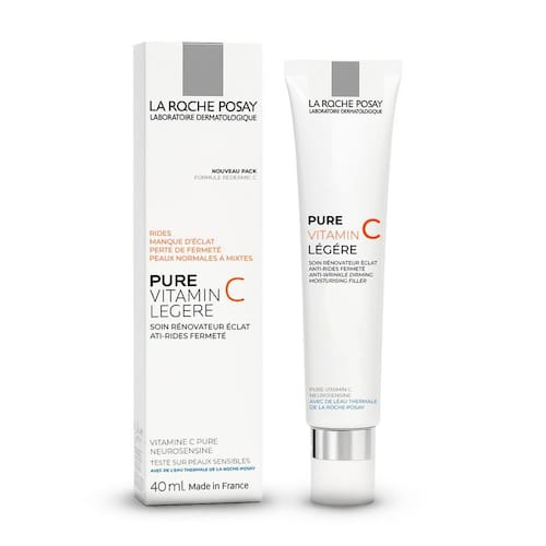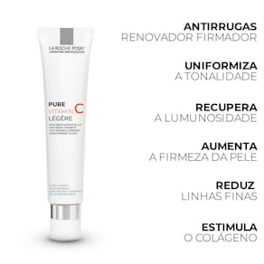 Pure Vitamin C Ligera Creme 40ml - La Roche Posay O Pure Vitamin C Ligera Creme da La Roche-Posay é um tratamento anti-idade com vitamina C pura altamente concentrada, ácido hialurônico fragmentado e manose. Desenvolvido para melhorar a firmeza, reduzir rugas, uniformizar o tom e devolver a luminosidade da pele, possui textura leve, aveludada e não oleosa, indicada até para peles sensíveis.