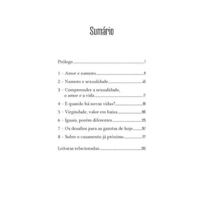 Dirigido às moças na flor da idade, este livro traz respostas equilibradas, perspicazes e cheias de esperança para questões delicadas sobre o amor: » O que é mais importante num relacionamento? » Como explicar ao namorado o que é aceitável ou não? » Há algum problema nos beijos? » Os homens entendem a sexualidade como as mulheres? » A vida sexual cabe no namoro? » A virgindade é um valor? Em meio a tantas vozes, ideias e pressões, esta obra do Pe. Ricardo Sada ajuda as jovens mulheres a enxergarem o que muitas vezes o mundo esconde ou distorce, oferecendo insights claros e seguros para salvaguardar a beleza do amor humano, a dignidade feminina e o imenso valor da sexualidade vivida com autenticidade, liberdade e alegria.