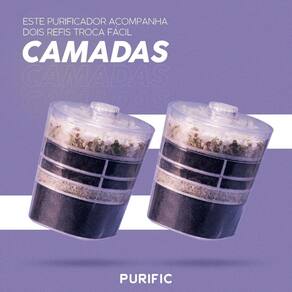 O purificador de água purific 10 da purific é muito versátil, ideal para uso doméstico e comercial para um consumo de água de médio fluxo. Tenha mais conforto e segurança consumindo uma água alcalina de qualidade com um purificador 100% fabricado no brasil. Este purificador acompanha dois refis do modelo purific camadas troca fácil, que possui sete camadas de proteção e realiza a purificação da água, com as etapas de pré-filtragem, filtragem e o tratamento. Cada refil/elemento filtrante possui capacidade para purificar 1200 litros de água, trazendo inúmeros benefícios para sua saúde. Possui placa de imãs e infravermelho longo, que atuam na organização das moléculas da água, deixando a água muito mais leve e de fácil absorção pelo organismo; Regula o ph da água; Reduz cloro; Reduz de vírus e bactérias, no mínimo 99,99%; Retém partículas; Reduz algas; Reduz fármacos: exemplos: mínimo 80%, mínimo 67%, metformina mínimo 95%, estradiol mínimo 75%, xenoestrogênio mínimo 78%, entre outros ; Reduz metais pesados: exemplos: cobre mínimo 48%, ferro mínimo 94%, cádmio mínimo 91%, níquel mínimo 98%, Cinza mínimo 71%, sulfato de alumínio mínimo 71%, entre outros ; Reduz : exemplos: atrazina mínimo 75%, diuron mínimo 80%, glifosato mínimo 77%, hexazinona mínimo 81%, 2,4 d mínimo 81% , fipronil mínimo 79%, carbendazin mínimo 81%, entre outros ; Reduz trihalometanos, no mínimo 81%. Metodologia: standard methods for the examination of water and wastewater, 2005. Legislações: portaria nº 888 de maio de 2022 - ministério da saúde. Todos os testes e emissão de laudos foram realizados pela uem universidade estadual de maringá Ficha técnica: Capacidade: 10 litros total, entre água a ser purificada e água já purificada . Refil/elemento filtrante: acompanha 2 dois refil/elemento filtrante modelo camadas troca fácil. Capacidade de purificação: 1.200 litros de água 600 litros para cada refil/elemento filtrante . Abastecimento: manual, mas pode ser conectado à rede hidráulica utilizando o kit hidráulico purific não incluso com o produto . Para mais informações consulte o manual do produto. Dimensões do aparelho purific 10 de torneira: 41 cm de altura x 27 cm de largura x 27 cm de profundidade Dimensões da embalagem: 45 cm de altura x 30 cm de largura x 31 cm de profundidade Peso: 3,8 quilos - pode ser utilizado com rede hidráulica com o kit hidráulico purific. - produto livre de bisfenol bpa e pp-bip-f - metodologia utilizada: cromatografia gasosa acoplada à espectrometria de massas adaptada da nbr 15176:2004.