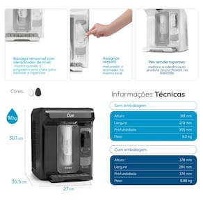 Purificador de água Ibbl com nanotecnologia, função bacteriostática, sistema de troca de filtro "girou, trocou", LED indicador de troca de filtro, bandeja removível, proteção UV e pés antiderrapantes.Função retrolavagem