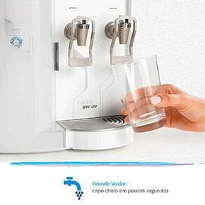 Sistema de compressor de alto desempenho, fornece água natural e gelada de forma contínua. Sistema de filtragem que reduz cloro, odores e impurezas. Reservatório interno de 2,18 litros. Vazão de 1,24 L/h. Uso indicado: Residencial e comercial leve. Ecocompressor com gás R134a. Refil Girou, Trocou. Nanotecnologia contra micro-organismos. Easy Clean (desmontável para higienização). Serpentina externa (fácil higienização). Bandeja removível. Torneira prática. Gabinete com proteção UV. Fixação na parede. Pés antiderrapantes. Boia de controle de nível de água. Termostato regulável externo. Etapas de purificação: 3. Eficiência de retenção de partículas (mm): Classe - C = 5 a 15. Eficiência de redução de cloro livre: Aprovado. Bacteriostático: sim. Vida útil do filtro: 3.000L / até 6 meses.Função retrolavagem