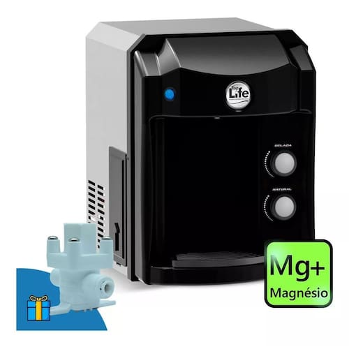 Purificador de água alcalina ionizada ozônio e magnésio mg+ Voltagem: 110v Cor: preto Fonte alcalina purificadores você sabia que o magnésio é um mineral essencial para o funcionamento adequado do nosso organismo Ao optar pelo nosso purificador he oxi mg+ com adição extra de magnésio , você fornecerá ao seu corpo um nutriente valioso, fundamental para a saúde cardiovascular, muscular e nervosa. A água com magnésio é uma maneira simples e saborosa de complementar a ingestão diária desse mineral vital. Além de auxiliar na absorção de outros nutrientes, o magnésio tem sido associado a tais benefícios: 1. Auxilia no funcionamento muscular, 2. Auxilia no funcionamento neuromuscular, 3. Auxilia no metabolismo energético, 4. Auxilia no metabolismo de proteínas, carboidratos e gorduras, 5. Auxilia na formação de ossos e dentes, 6. Auxilia no equilíbrio dos eletrólitos, 7. Auxilia no processo de divisão celular. O purificador he oxi mg+ possui 3 vezes mais água magnesiana que as águas minerais comuns, trazendo mais saúde para sua vida. Características técnicas do purificador: Capacidade de refrigeração: 2,4 litros/hora Eficiência bacteriológica: aprovado Eficiência de retenção de partículas: aprovado Eficiência de redução de cloro livre: aprovado Refrigeração: sim - refrigerado por compressor Consumo de energia: 127v 2,31kwh/mês Consumo de energia: 220v 2,28 kwh/mês Tensão: 127v ou 220v Potência: 100w Amperagem: 0,78 a Frequência - mercado nacional: 60hz : 1 ano Vida útil do refil: 3.000 litros ou 12 meses Uso residencial: sim Uso empresarial: sim Vida útil do produto: 10 anos em média Sem embalagem frente x altura x profundidade cm: 29,0 x 38,6 x 39,4 Com embalagem comprimento x largura x altura cm: 43,5 x 34 x 41 Peso líquido: 11 kg Peso bruto: 12,55 kg Gás refrigerante: r 134 a Vazão máxima: 60 l/h Grau de proteção: ipx0 Eficiência energética: 127 v 0,049kw/l Eficiência energética: 220 v 0,05kw/l Pressão de trabalho: 0,049 mpa a 0,39 mpa de 5 a 40 metros de coluna de água características técnicas da válvula : Material: injetado em abs. Conexão de mangueira entrada 1/4, saída de 1/4 Cor: branca função: - controlar do fluído água para evitar fenômeno golpe de aríete por que devo comprar esse purificador - diferentemente dos demais modelos do mercado, os purificadores de água top life não são feitos de plástico, mas sim de aço, por isso são um bem durável, capazes de resistir por pelo menos uma década de uso contínuo e diário. - o purificador he oxi mg+ da top life não é apenas um filtro, ele é uma super máquina capaz de deixar a água purificada, alcalina com adição extra de magnésio , ionizada, refrigerada e ozonizada. - este purificador pode trazer uma série de benefícios para saúde das famílias, sobretudo por meio da água alcalina rica em magnésio, que auxilia no fortalecimento dos ossos, relaxamento muscular, regulação do humor e auxilia nas enzimas digestivas. - o modelo he oxi mg+ tem um botão que aciona o ozonizador e assim mistura na água o poderoso gás ozônio, importante agente para redução de bactérias e de resíduos de agrotóxicos na superfície de alimentos crus. - todos os modelos de purificadores de água da top life são aprovados pelo inmetro instituto nacional de metrologia, qualidade e tecnologia , sendo assim, tem eficiência e qualidade atesta e comprovada. - melhor relação custo-benefício do brasil: baixo consumo de energia, maior capacidade de fornecimento de água gelada, melhor eficiência energética, redução de cloro livre, retenção de partículas e com eficiência bacteriológica aprovada. Produto altamente qualificado para seu conforto e qualidade de vida. - menor consumo de energia elétrica seja para residência ou comércio, isso porque o motor compressor do aparelho atua com maior eficiência energética, destacando entre os mais econômicos do mercado.