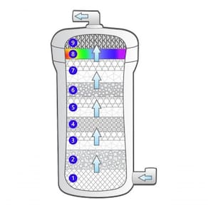 Carvão Ativado Impregnado com Prata Coloidal: Retém cloro e compostos orgânicos, além de inibir e reduzir a proliferação de bactérias.