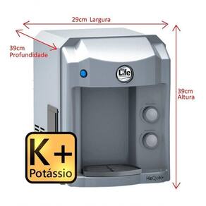 O Purificador de Água HE OXI K+ é um purificador refrigerado de alta performance, responsável por transformar a água, mantendo seu pH alcalino entre e e enriquecendo-a com Potássio, um mineral essencial para o bom funcionamento das células, dos músculos e do sistema nervoso. A água alcalina é antioxidante, auxiliando na eliminação de toxinas do corpo, contribuindo com melhorias na estrutura óssea e proporcionando uma super hidratação.