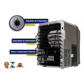 Capacidade de Refrigeração: 2,4 litros/hora (ambiente a 32C e água a 27C).