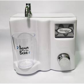 Os purificadores de água Champion são produzidos pelo grupo AQUACENTER, desde 1985 no mercado de filtros e purificadores de água Nossos aparelhos dispensam pré-filtros pois já possuem grande quantidade de elementos filtrantes que realizam a pré-filtragem, filtragem e purificação da água. Com moderno sistema de retenção de sólidos em polipropileno tecnologia Melt Blow , também dispensam a retro lavagem, ainda encontrada em alguns modelos no mercado. Todos possuem 6 meses de garantia para defeitos de fabricação e são fáceis de instalar. Moderno e eficiente, foi feito na medida para consumidores preocupados com seu bem-estar e de seus familiares. Mesmo compacto, possui grande capacidade de retenção de impurezas sólidas, resíduos químicos e orgânicos. Fácil instalação e manuseio, alta vazão, bica móvel e gabinete em plástico ABS, resistente e de fácil limpeza. Adesivo com a logomarca Champion inspirado no calçadão de Copacabana... Conheça e leve mais saúde e requinte para sua casa Características e diferenciais - Design moderno com porta copos, água natural, 2 filtros internos com 10 etapas de filtragem, carvão com prata contra germes e bactérias. Medidas - Larg. 24,5 cm - Alt. 24,5 cm - Prof. 18 cm Cores - Somente branco disponível Acompanha: Adaptador para instalação, mangueira atóxica 1mt , parafusos, buchas e manual de instruções Obs: Imagens meramente ilustrativas.