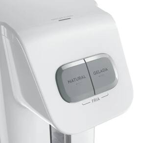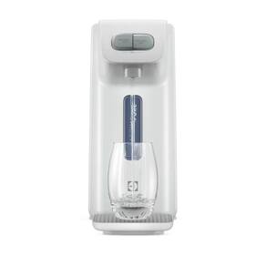 Purificador de água Electrolux Efficient com filtragem Acqua Pure, retém impurezas, reduz cloro, odores e sabores. Dispensa pilhas, design compacto, instalação na parede.Função retrolavagem