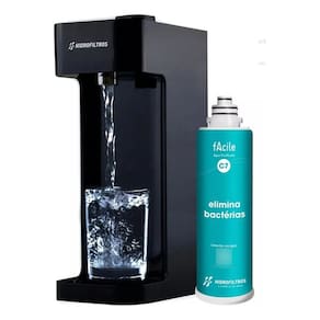 Composto de ABS de alto impacto, possui válvula de cerâmica que evita gotejamento e garante durabilidade de até 200 mil acionamentos. Além disso, conta com acionador de água com proteção antimicrobiana, que repele vírus e bactérias como os da herpes, por exemplo. É ideal para qualquer ambiente, desde que seja instalado em local com até 1,5 m de distância de um ponto de água, na parede ou sobre a bancada da pia. Indicado para quem busca um sistema completo de purificação de água em um único produto.