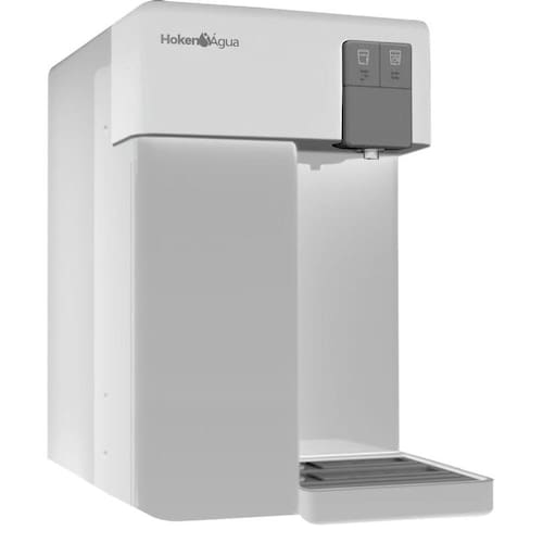 Purificador de água Hoken que oferece água gelada e natural, reduz o cloro, a turbidez, trihalometanos, gosto ruim e mau cheiro. Mantém o flúor e possui baixo consumo de energia.Estágios de filtragem