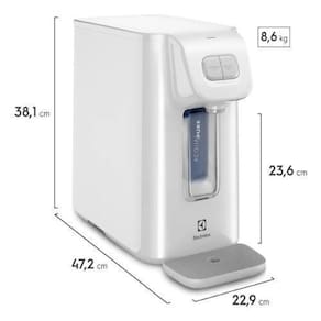 Características Gerais do produto Design cometrospacto e inovador, painel fácil de operar, alerta de troca de filtro, tanque de fácil limetrospeza, altura ideal para jarras, garrafas e copos.