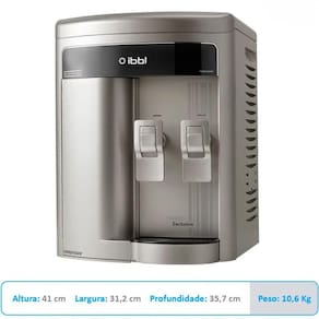 7O Purificador de Água IBBL FR600 Exclusive 110V combina filtragem avançada e refrigeração eficiente para uso doméstico. Com compressor de alta performance e vazão de 1,1 L/h de água gelada, garante água pura e sempre na temperatura ideal, ideal para residências e pequenos escritórios.