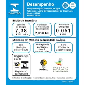 Purificador de água PA355 Latina. Aprovado por milhões de Brasileiros!