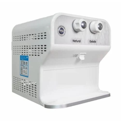 Purificador de água natural, gelada e ozonizada com sistema de refil girou-trocou e bica retrátil para diferentes tipos de recipientes.Função retrolavagem