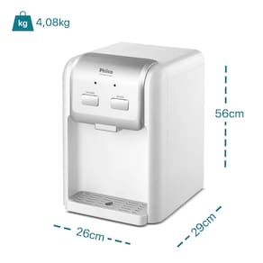 Sistema de dupla filtragem com carvão ativado, refrigeração eletrônica, bandeja coletora removível, conexão direta à rede de água.Função retrolavagem