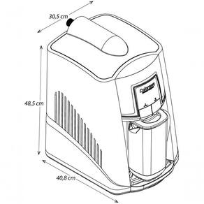 Modelo Voltagem (V) Sistema de refrigeração Troca de filtro Vida útil filtro Volume de água gelada (L) Instalação Dimensões do produto (LxAxP cm) Peso líquido (Kg) Dimensões com embalagem (LxAxP cm) Peso bruto (Kg) Cubagem (m3) Premium 127 / 220 Compressor Sim 6 meses ou 4 mil litros 2,3L Bancada 29 x 49 x 42,5 10,2 30 x 54 x 45 11 0,077 NA | Cor: BRANCO | Voltagem: 220 V