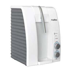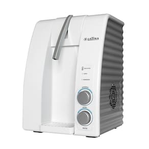 Com design moderno, este purificador de água está disponível nas cores Branco ou Prata.